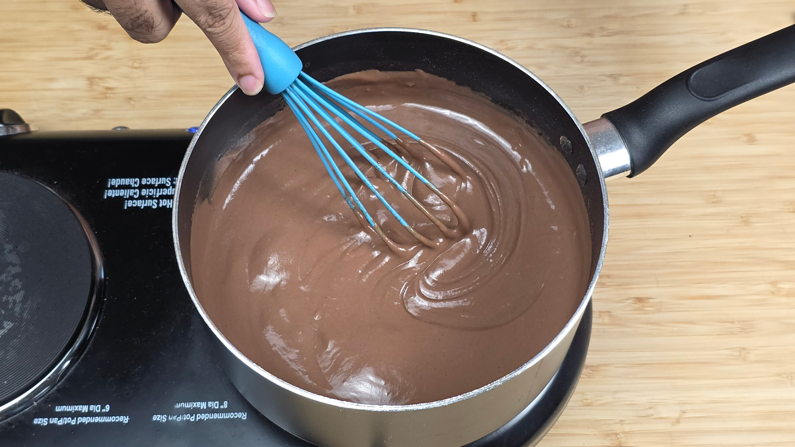 And lastly, it is true that you don’t have to micromanage eggless chocolate pudding to nearly the same extent as a custard, since you don’t have to worry about eggs scrambling with the heat. However, that doesn’t mean you can leave the pudding alone while it cooks either. If the pudding’s left unattended, you may end up with unevenly cooked clumps of flour and cocoa powder that weren’t well-combined or fully dissolved. That’s why I do recommend that you constantly stir the chocolate pudding (although a brisk stir is not required) from the time you start heating it until the time it’s done, as this help ensure any clumps of flour or coca powder are completely broken up and dissolved.