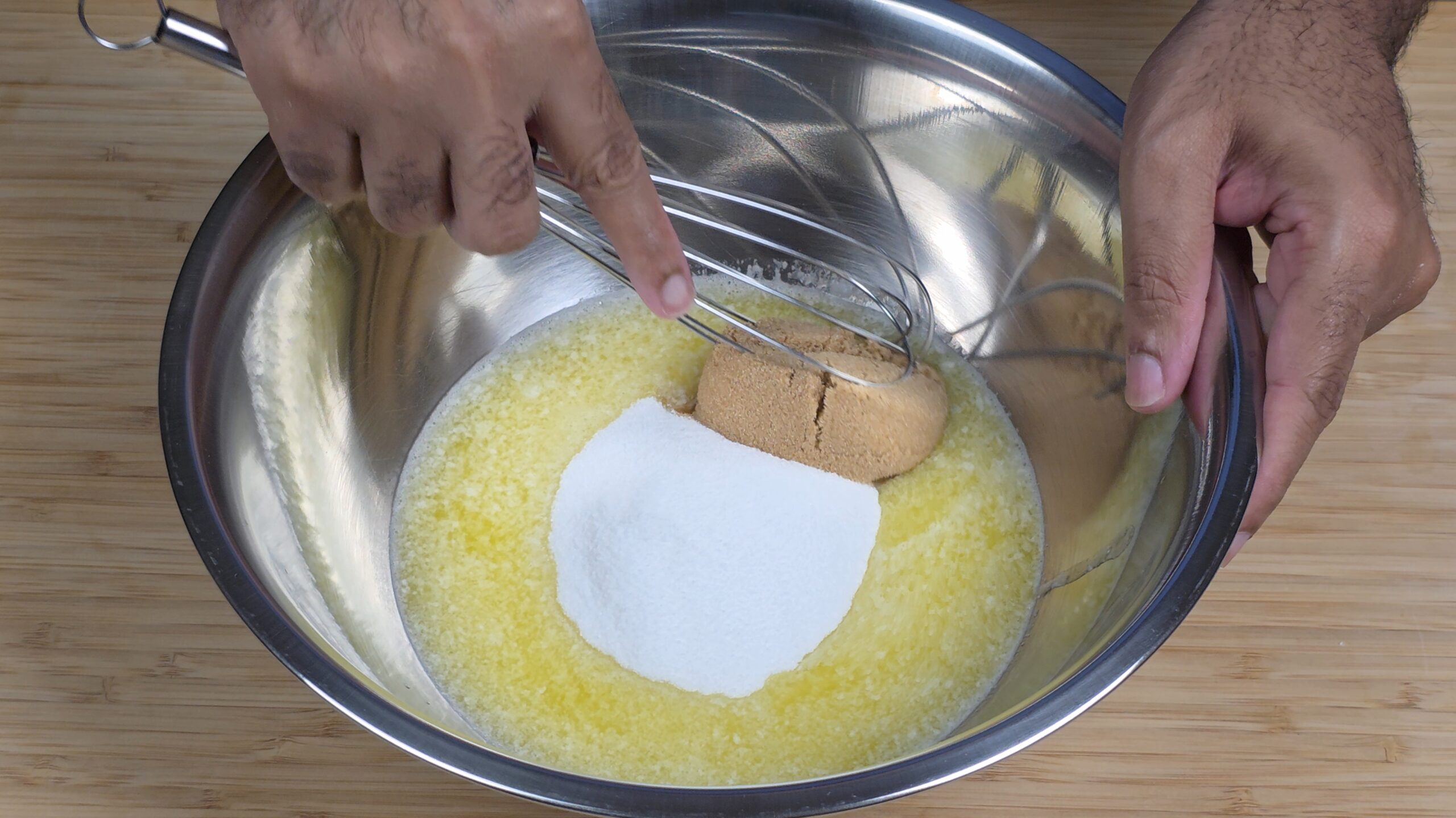 • Whisk butter with sugar until well-combined (approx. 60 seconds).
